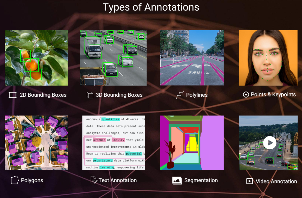 There are various image annotation types such as Polygons, bounding boxes, 3D cuboids, Semantic Segmentation, Lines, and Splines that can be incorporated into autonomous vehicles. These annotation methods help in achieving greater accuracy for autonomous driving algorithms. However, which annotation method is best suited for you must be chosen according to the requirements of your project.